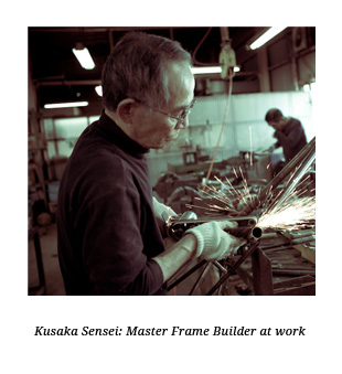 Shuichi Kusaka-sensei is Kinfolk’s 72 year old master frame builder. Based in Akashi, a small industrial seaside town near Kobe, Kusaka has been crafting steel bicycle frames for over 30 years, his workshop is staffed by a small team consisting of a painter, a polisher and one young apprentice.