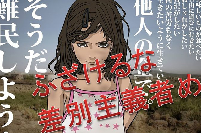 As reported by The Japan Times, the artist was quoted as saying, “It is my understanding that most of the refugees fleeing Syria this time are bogus asylum seekers. Instead of traveling around furtively like before, those illegal migrants are now inundating other countries through the front door… I have no problem with genuine refugees who really are unfortunate. This illustration is supposed to be a dig at those ‘bogus refugees’ who are exploiting the world’s sympathy for those truly in trouble.”