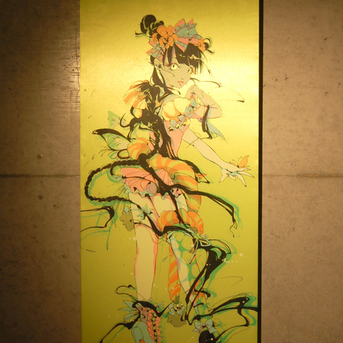 Those have affected everything in her life from drawing manga to start with, down to glitter pens and her diary filled with richly colored decoration. While she was in Tama Art University, she started to express those as an art. In this exhibition, Natsuki Otake’s dynamic style and use of overwhelming colors will sate the viewer with the idea of “an idol today” yet drawn by a Japanese traditional art technique.