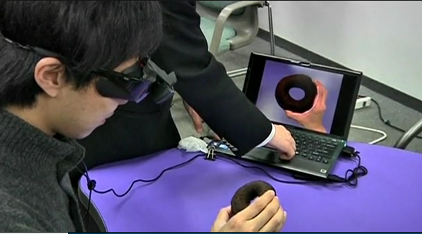 Wear these specs, and you will see doughnuts – maybe even a plate of sushi – appear larger, tricking your stomach into thinking it’s full. Or so they say… Take a look at this video (or check out the still below from Reuters) and see what you think; would you really be fooled? Why did it take a team of Tokyo scientists to come up with the idea?