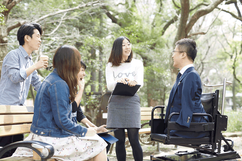 Something that impresses you on meeting the Tokyo native is a powerful sense of his poise and self-assurance. Although his first book, “Gotai fumanzoku” (translated in English as “No One’s Perfect”) recounts stories of how Ototake overcame his physical limitations in order to run, jump rope, swim, and play basketball on his junior high club team, it also depicts a young man with a natural talent for leadership. From his elementary student days to his time at Waseda University, he was never interested in just being accepted: he wanted to make a difference in any community that he was a part of.