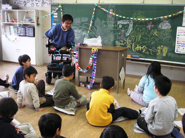 Ototake with his elementary school students at Tachisuginami Elementary School #4 (photo courtesy of Hirotada Ototake)
