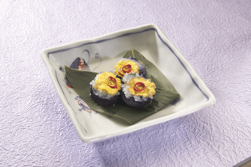 The chrysanthemum, the official flower of Japan’s Imperial Family, can be seen all over the country – but eating it is another story. You can do just that in Akita, though, with hana-zushi, a specialty of the region. The rolls, which look like sushi, are actually pieces of eggplant filled with mochi rice and topped with pickled chrysanthemum and a sliver of hot pepper. These treats are often served in Akita households around New Year’s, but can also be found in restaurants and supermarkets.
