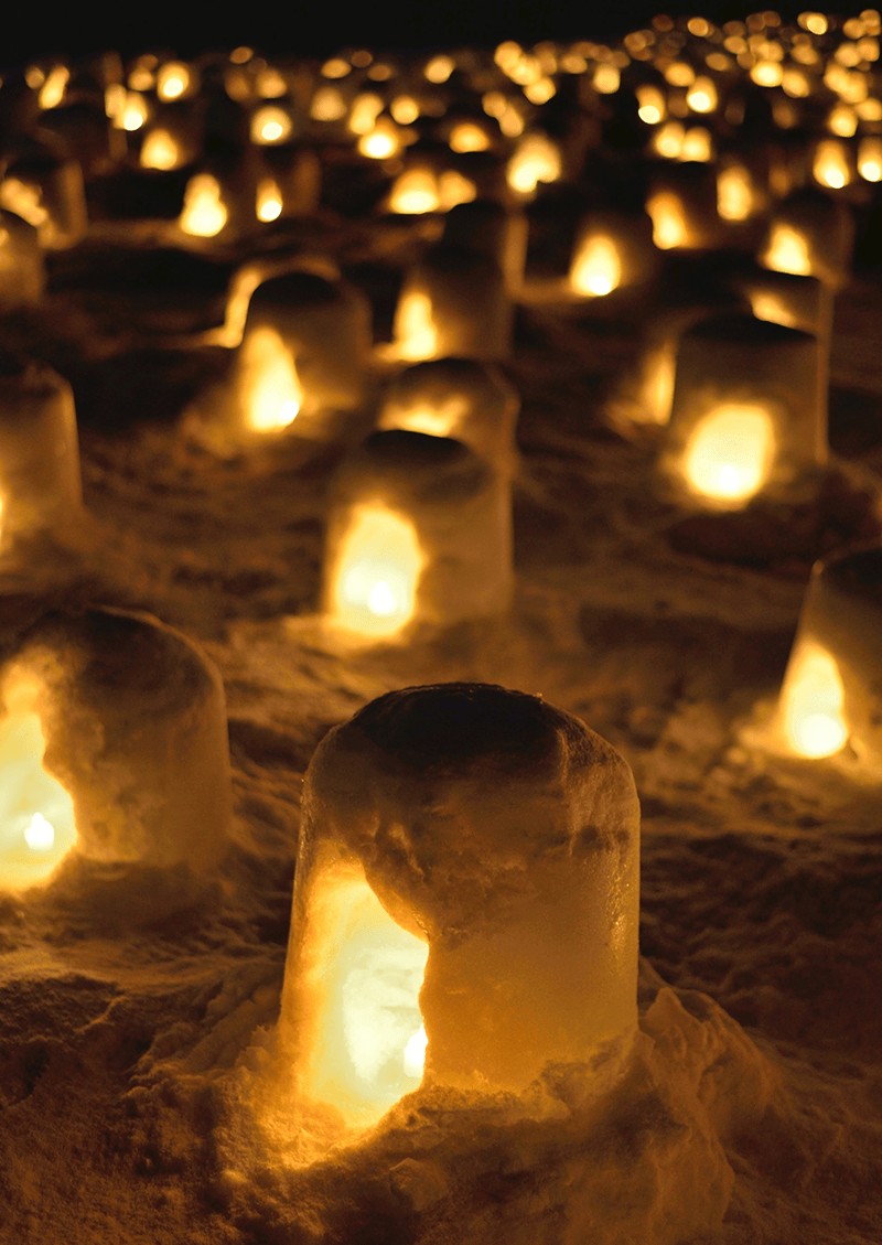 Akita experiences some of Japan’s snowiest winters, and Yokote, in the southeast, can get as many as 30 centimeters in a single night. The city has embraced its position as Akita’s snow capital with the Yokote Kamakura Festival, which features small, igloo-like huts made of snow and called kamakura. Guests move back and forth between these huts eating mochi rice cakes and sipping on sweet rice wine while huddling around the fire with the locals. The February festival, which has been going for 450 years, also features snow sculptures, access to Yokote Castle, and hundreds of mini-kamakura, which look truly stunning when lit by candles at night.