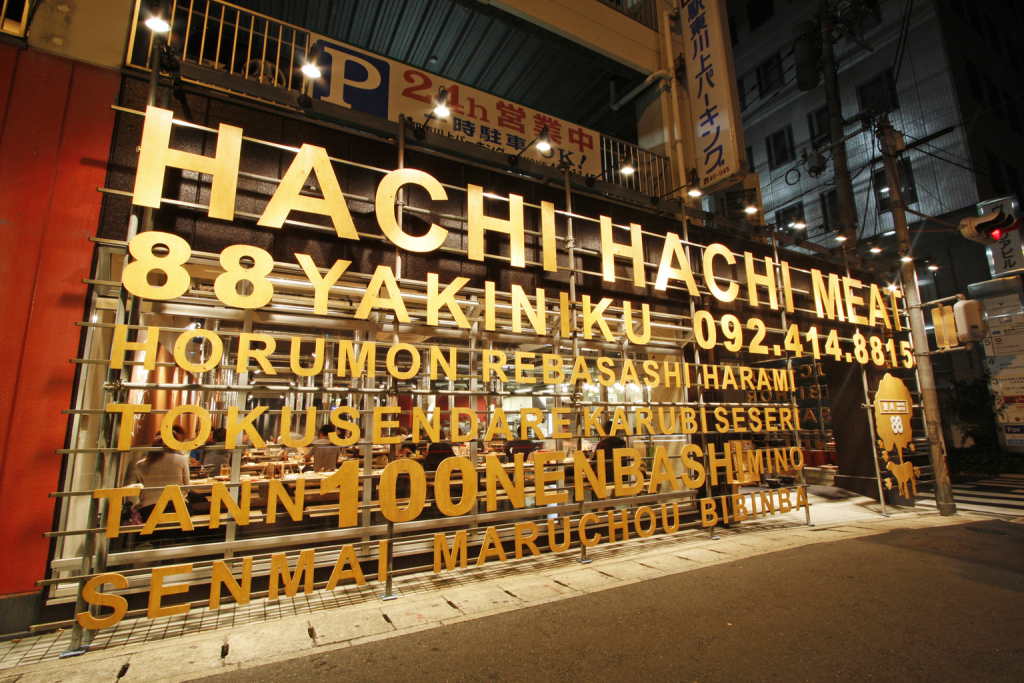HACHI HACHI (88) Hakata uses carefully selected ingredients sourced from Saga and Miyazaki prefectures, which are near the sophisticated yet reasonably priced yakiniku restaurant’s home base of Fukuoka in Kyushu Prefecture. One portion of mouthwatering Kyushu wagyu beef barbecued specially over a shichirin charcoal grill is only ¥480. Paired with Japanese beer, this is one savory Japanese yakiniku experience that must be enjoyed.