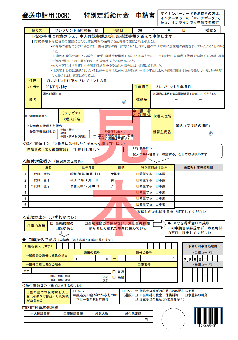 To receive the ¥100,000, you will have to fill in the application form and send it back. You will not receive the money automatically. The form pictured below is the latest sample provided by the government.