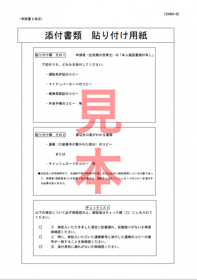 Here is where you should attach all additional documents. Those include a copy of an official ID of the head of household and/or your proxy. Either of the following documents will be sufficient: residence card (copy both sides), passport copy, driver’s license, Japanese health insurance card, or My Number Card.