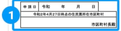 In Section 1, fill in the application date starting from the year (令和) 2, followed by the month (月) and the day. If you are filling in the application on May 27, 2020, it will look like 令和2年5月27日. In the space below write the name of the municipality in which you live as of April 27.