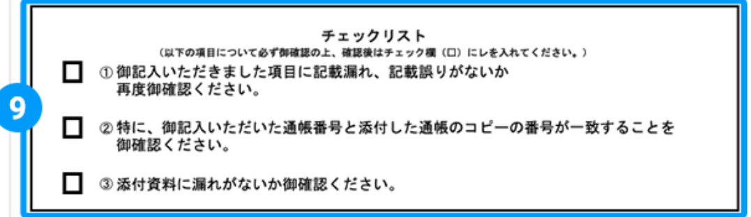 - Make sure that the bank information you have written in the application and the copy of the bank book/cash card are of the same bank account.