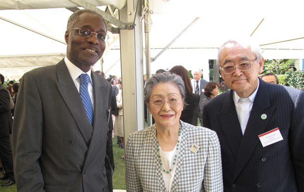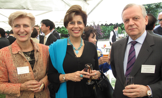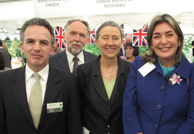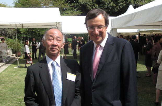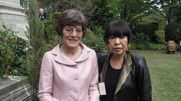 The clouds cleared up and the sun came out for British Ambassador David Warren and his wife Pamela’s midday party on the occasion of the birthday of Queen Elisabeth ll. Most of the guests spent their time in the garden enjoying the wide variety of British food, as well as some ethnic dishes. Inside the residence, one large room and the veranda served as a buffet area for some wonderful desserts that included all kinds of scones, chocolates, cakes, and of course the best of British teas. As always at the Warrens’ home, there was an interesting variety of guests from all walks of life. I talked with US Ambassador John Roos a bit and enjoyed meeting a couple of young oceanologists who were with him in the garden. It was also nice seeing Tom Yoda and congratulating him on his two years as the director general of the Tokyo International Film Festival. Tom’s at the helm this year again, and I’m sure he’ll make it all very special. It was a great day in every way with David, Pamela, and their many friends.