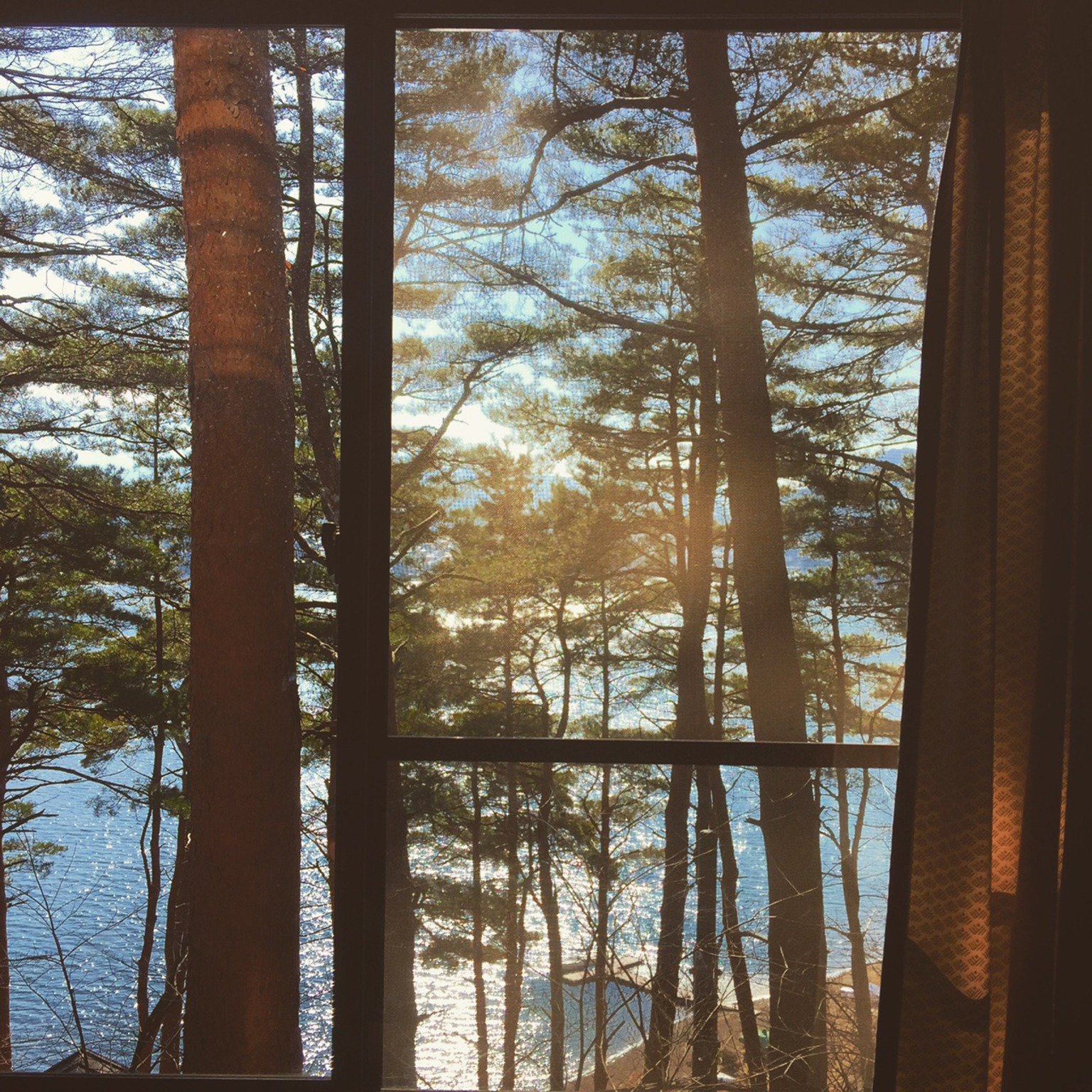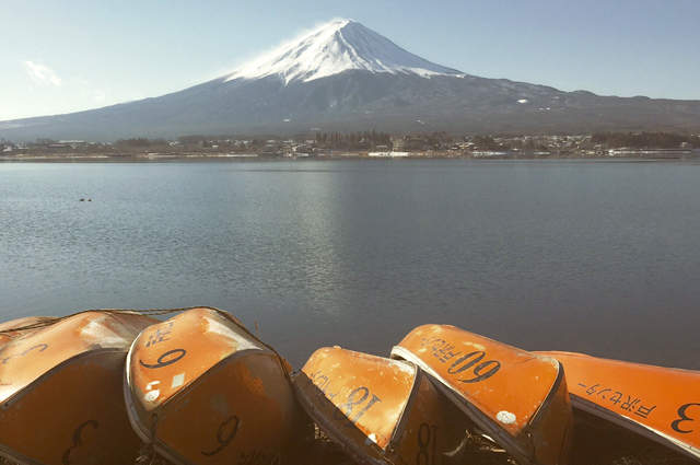 The real estate we’d gotten for our stay was prime: the hills slope directly to the shore of Kawaguchiko, with only a bike trail separating our stay from the wee beach. The home-away-from homes are a quiet and ideal haven, tucked into small pockets in between larger slopes of neatly grown, tall and slender pine trees. Sunlight was pouring over the resort area; we could watch both sunrise and sunset over the lake from our cabin’s balcony and windows.