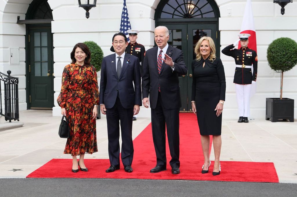 The White House was transformed into a spring garden, complete with a koi pond and floating lily pads. Paul Simon provided the entertainment, performing “Graceland” and “Slip Slidin’ Away.” The extravagant menu featured house-cured salmon with avocados and red grapefruit and dry-aged rib eye steak. During his toast, Kishida quoted Star Trek, wishing everybody to “boldly go where no one has gone before,” after stating that “we’re now standing at a turning point in history.” Biden spoke about cherry blossoms, describing them as “a symbol of what both countries hold dear: new beginnings.”