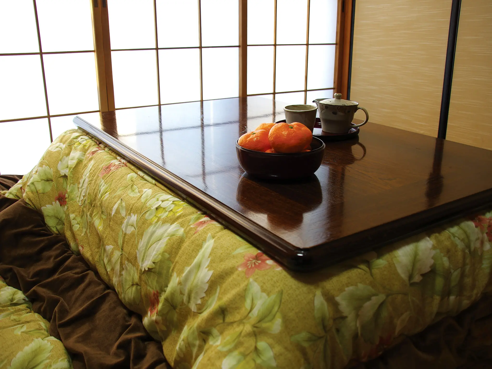 First things first, you’ll want to know what a kotatsu actually is. Simply put, it’s a type of home heater — a low table with a heater underneath it that is covered by a blanket, designed to warm up your legs as you sit around it. With the advent of central heating and air conditioning, they aren’t as common as they once were, but ask any Japanese person about a kotatsu and they’ll likely light up. The heat from a kotatsu is a special kind, it doesn’t dry out the room like air conditioning does, and in a culture which shies away from excessive physical contact, it’s an excuse to snuggle up close with friends and family.