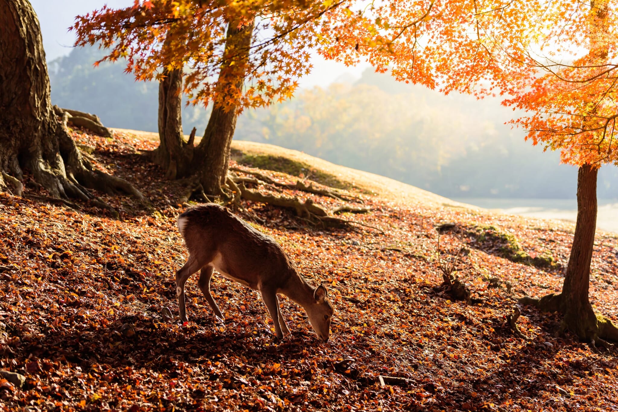 Today, there are around 1,325 of these sacred deer in the Nara Park area. They are considered rare ancestral species and have peacefully coexisted with the citizens of Nara over the years. The deer also enjoy eating special crackers called shika senbei (deer crackers) offered by park visitors. While this is a fun activity, the deer’s diet comes mostly from natural sources like grass, acorns and leaves. The park continues to urge the public to refrain from littering, or feeding the deer with anything other than crackers.