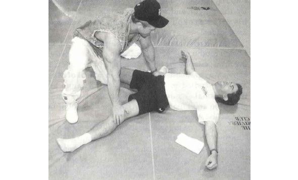 The stretching program is basic but complete. The stretches, in order, are: seated toe touch, V-set toe touch, hurdler’s stretch, butterfly, shoulder stretch and chest stretch.