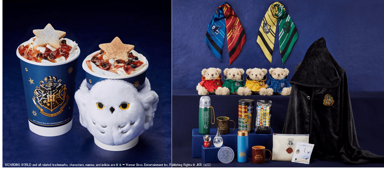 Merging the themes of Harry Potter, Christmas and general British culture, the coffee chain is selling food and drinks. This includes festive mince pie-flavored lattes in original Hogwarts cups and Hedwig-shaped cup warmers. The owl warmers can then be worn on the wrist. There are the usual suspects too, such as Shepherd’s pie and milk tea to name but a few. From accessories to coffee-related products like mugs and special coffee beans, there’s also a wide range of themed items on sale.