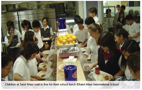 Parents at Tokyo International School (www.tokyois.com) can, for instance, order daily meals from the school, which has been using a service called Mutti to provide a variety of choices to students since May of this year. According to Masumi Yoshimura, Director of Global Associates Co., Ltd. (Mutti’s parent company), children have the choice of either an obento or western- style lunch each day. Obentos, which are available in two sizes daily, may include such options as onigiri, karaage (Japanese fried-chicken), or noriben. Westernstyle menus have been developed by Nathan’s Hotdogs, with fresh fruit added daily by Mutti in order to increase the nutritional value. Masumi also encourages close communication between families, schools, and Mutti, saying that: “if we can be associated with the school, parents will be satisfied with our services.”