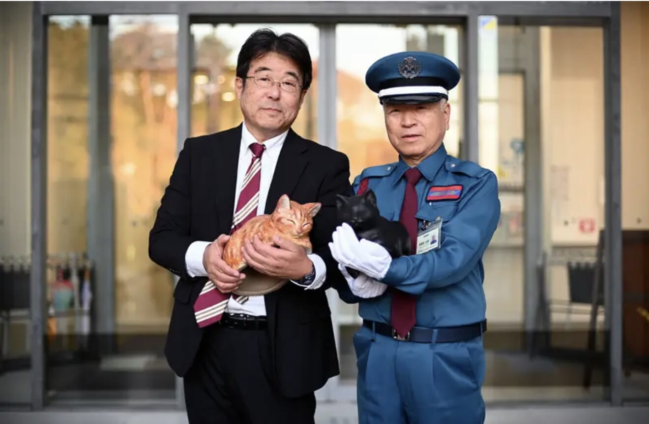 For seven years, this unlikely friendship continued. The museum staff noticed that Ken-chan was never terribly interested in the exhibitions themselves; he simply wanted to play with his favorite guard. In 2018, Ken-chan began bringing along a friend: an orange tabby affectionately dubbed Gocchan. Together, the two would visit the museum steps, often engaging in a two-on-one “battle” with the ever-dutiful Umayahara.