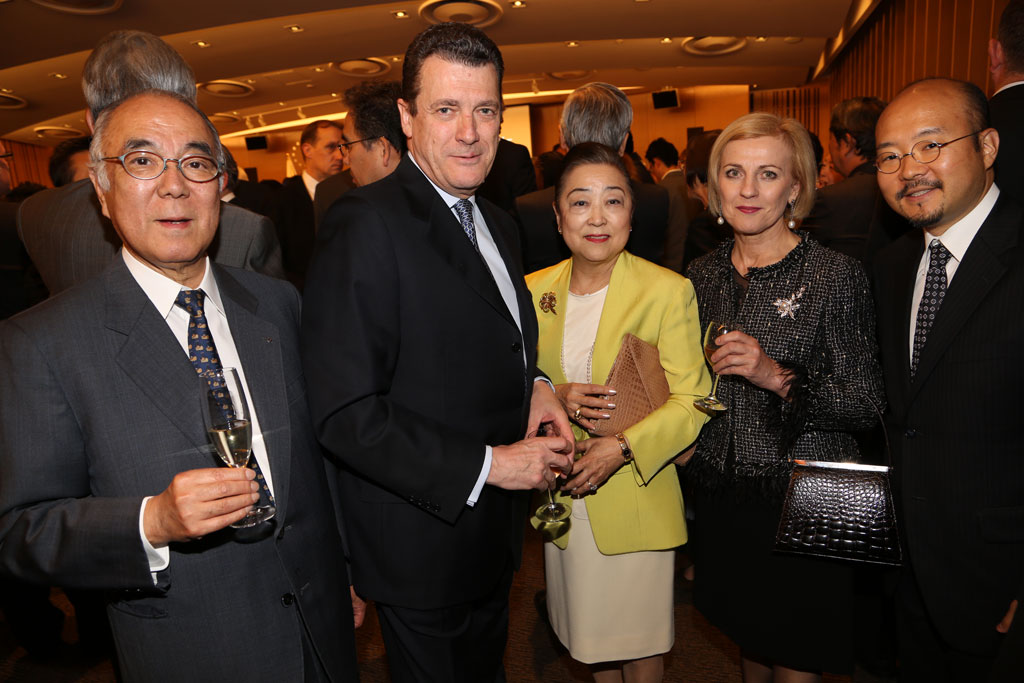 Takahide Inayama, Spanish Ambassador Miguel Ángel Navarro Portera, Hiroko Inayama, Romana Portera, Venezuela Ambassador Seiko Luis Ishikawa at the Europe Day Reception