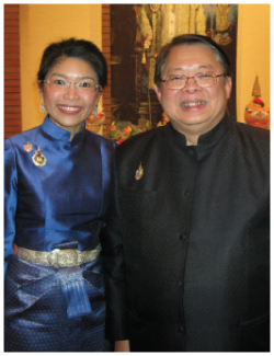 Thailand’s King H.M. Bhumibol Adulyadej has long been one of the most loved and highly respected leaders in the world and the reception to celebrate his birthday, held at the Imperial Hotel here in Tokyo, was perfect for the important event. The huge hotel venue was wall-to-wall with people and guests included many Japanese government officials, most of the international diplomats posted here, business leaders, familiar faces from the arts, fashion and entertainment worlds and the cream of both Japanese and foreign society. The turnout was proof of the popularity of the king and his top representatives here, Thai ambassador Virasakdi Futrakul and his dynamic wife Aumaporn (pictured, left).