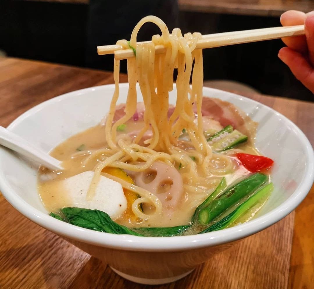 Zen serves addictive tori paitan (thick chicken broth) ramen, salty and fatty, but the generous topping of organic vegetables, including pumpkin and lotus root, makes it feel like a luxurious treat for the body. I always go for the tokusei torisoba, which comes with a boiled egg, chicken and pork toppings as well as plenty of veggies. You can add seaweed and the store’s special spice mix to change the taste as you go.