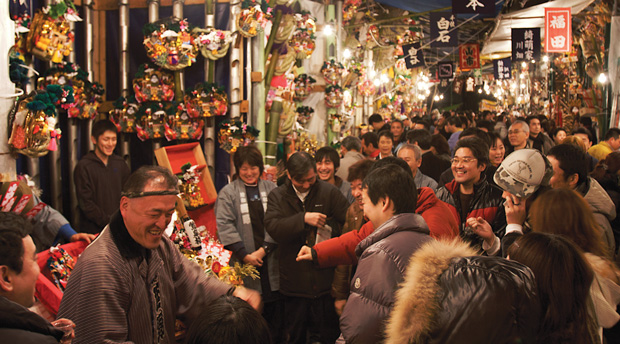You can join the nightclub crowd to celebrate the end of the year, but the traditional New Year’s Eve celebrations in Japan are mostly held in shrines and temples. Sensoji in Asakusa (www.senso-ji.jp; pictured above) and Hiejinja in Akasaka (www.hiejinja.net) are popular destinations, but one of the most famous temples for the annual rite is Zojoji, the center of the Pure Land Sect of Buddhism that was built in 1605. At the temple in Shiba, visitors write down their wishes on a piece of paper and are handed balloons that they release at midnight as prayers for happiness and luck for the upcoming year. The other highlight of the evening is the ringing of Zojoji’s bells. The visit to the temple is free, the octopus balls and yakisoba you pay for.