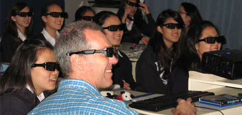 The first classes to use the 3D technology were AP physics, ‘Nerd club’, grade 8 science, grade 5 science and grade 10 physics. There are many sound educational reasons that make this system such a strong educational tool. There is the clear, very large 3D visualisation of what previously would have been either small models or 2 dimensional diagrams. The interest level is aroused, stimulated and maintained by the use of the technology for the delivery of the information and this is having a significant impact on the recall of the students’ knowledge. The students are also better able to see how the science fits into real world situations with some of the software available.