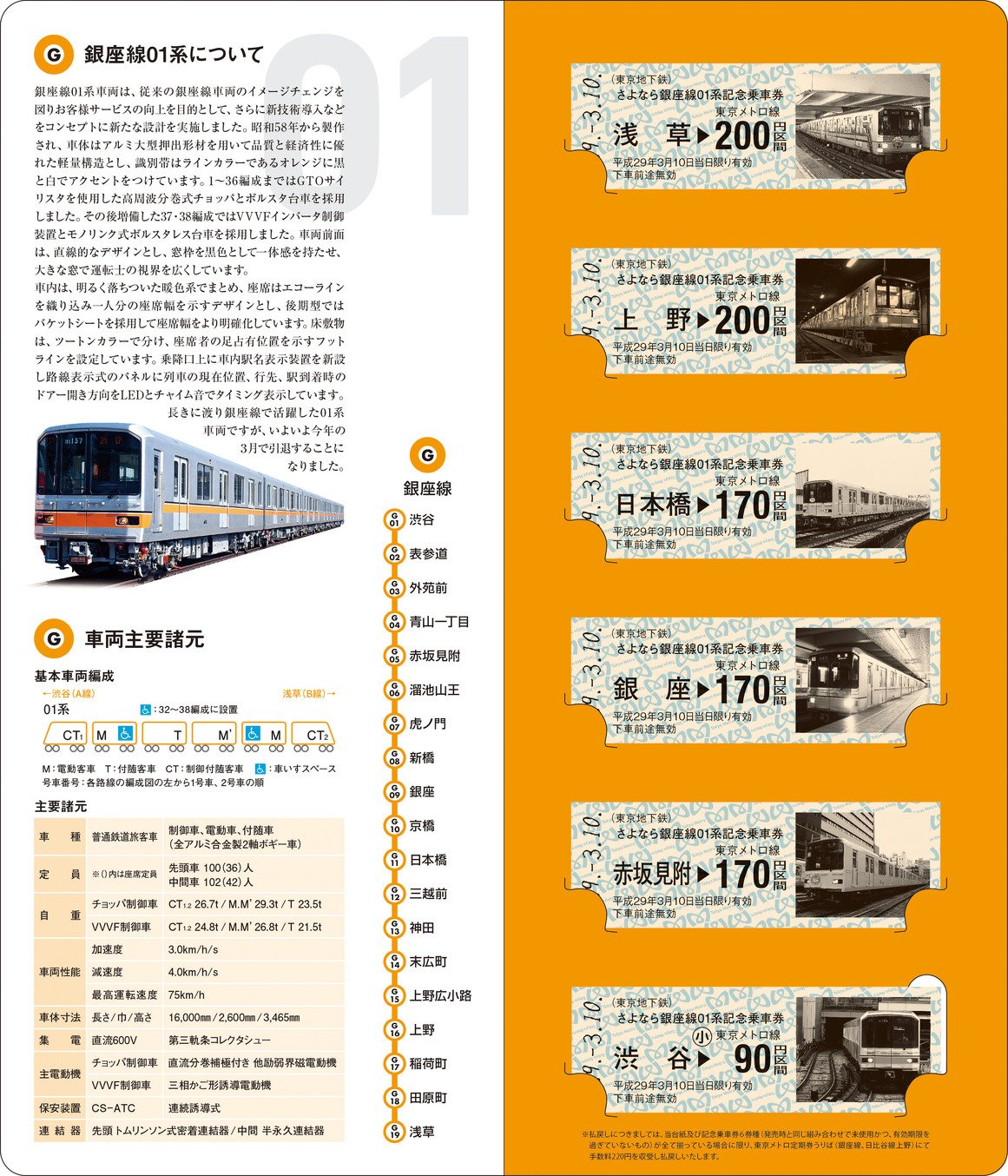 The retro-looking ticket packs are a set of six tickets for usage at major stations the Ginza Series 01 has run along, including stops from Asakusa to Ueno, where the Ginza line was first established. Passengers are invited to look back on the history of Series 01: all tickets include a photo from the past and moments from special occasions that the train has run through.