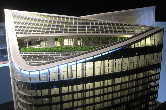 The development has been billed as a new flagship for urban living, and features state-of-the-art anti-earthquake and disaster measures and a green space at the base of the building.