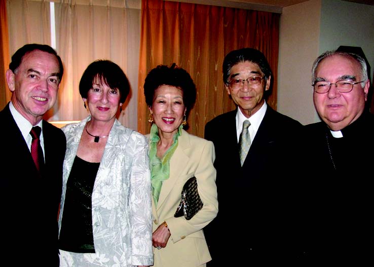 Swiss Ambassador Paul Fivat, his wife Judith, Hisanaga and Takako Shimazu, and archbishop Alberto Bottari de Castello (Holy Sea)