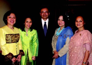 Outgoing Malaysian Ambassador Datot Mohd Radzi, Boontipa Simaskul of Thailand, Jazliza Radzi, Dja Dja Carriedo of Spain, and Jasmine Ud Doula of Bangladesh