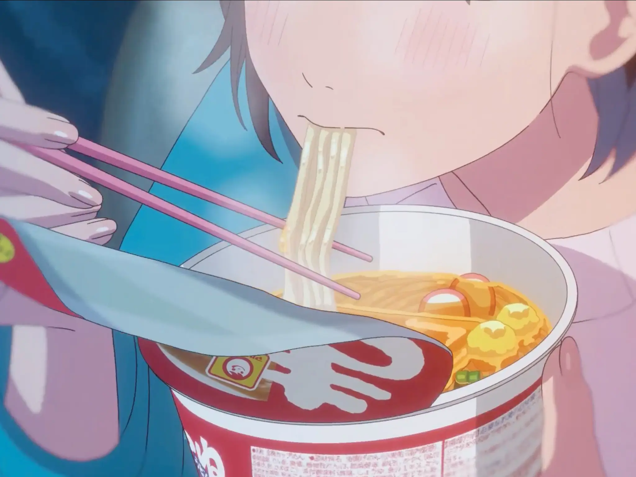 The commercial opens with a woman watching an emotional drama on TV. To soothe herself, she turns to a bowl of Akai Kitsune udon. As she eats, her cheeks flush. She then whispers “delicious” with an almost intimate tenderness.
