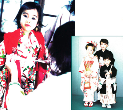 Traditionally, children weren’t allowed to grow out their hair until the age of three. Up until that time, their heads were shaved. Upon reaching five years of age, boys were allowed to wear their first hakama pants in public, and at the age of seven girls wore their first obi to tie their kimo- nos instead of cord. By the Edo period (1603–1868), this practice was not limited to nobility, and most families around Japan began to visit shrines to have priests pray for the health of their children on November 15.