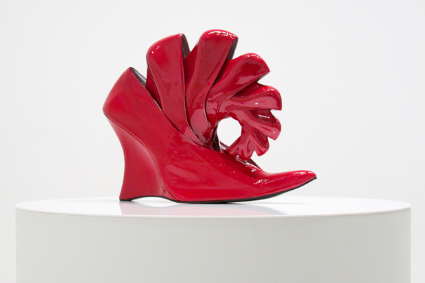 Similarly, Miwa Yanagi has also been branching out from her well-known photography to explore more installation work. In XXXS-XXXL, she presents us with women’s shoes sized by the vague small-medium-large categories. The actual sizes, however, go from toddler-sized up to truly gargantuan, and viewers are invited to try them on though it is unlikely any will fit.