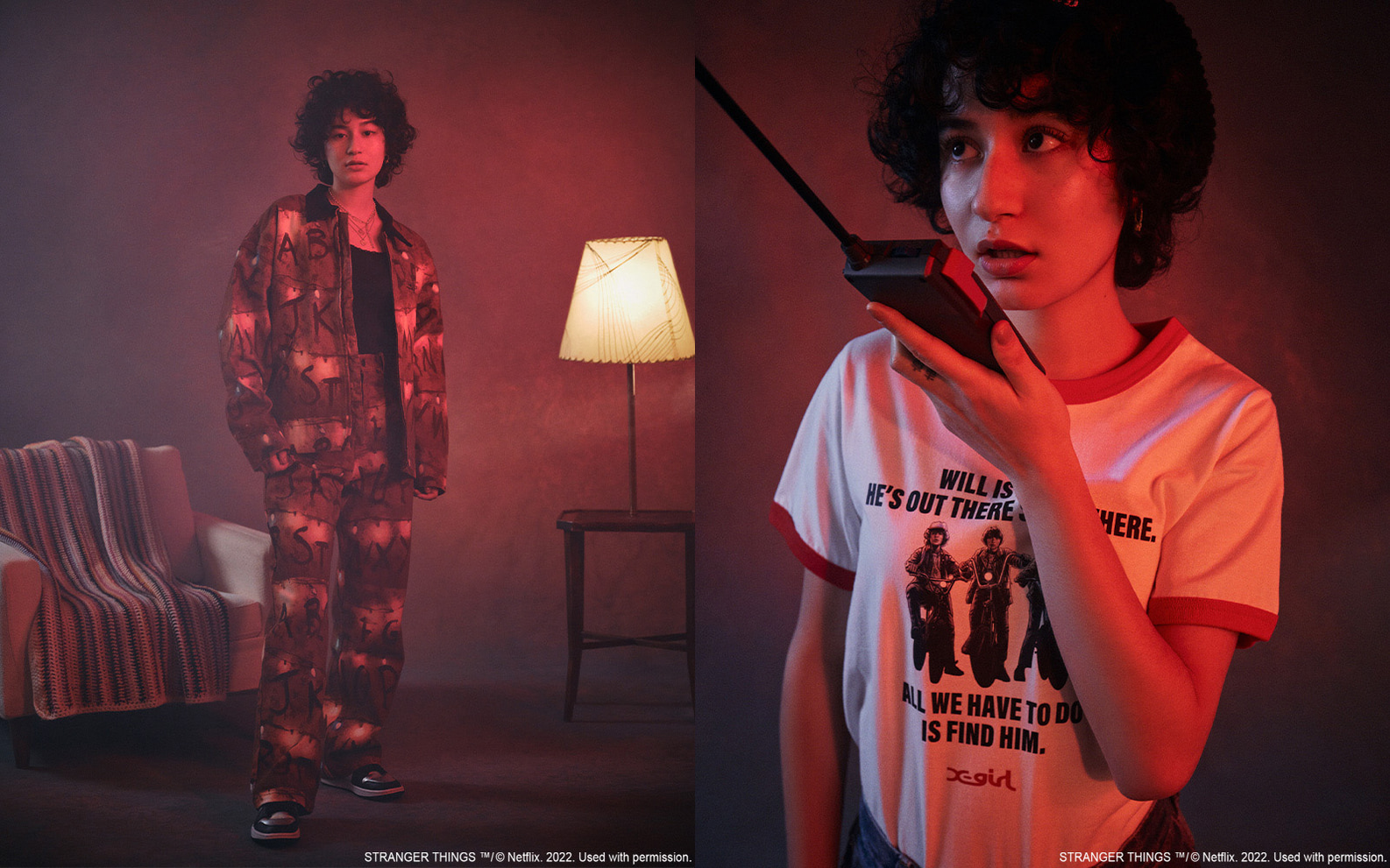 X-Girl is a streetwear brand that has collaborated with Netflix on several original hoodies and T-shirts with the Stranger Things logo and imagery. The item that stands out the most from the collection is a set of trousers and a jacket that harks back to the first season of the show. The set is covered in Christmas lights which were an important plot point in the first season.