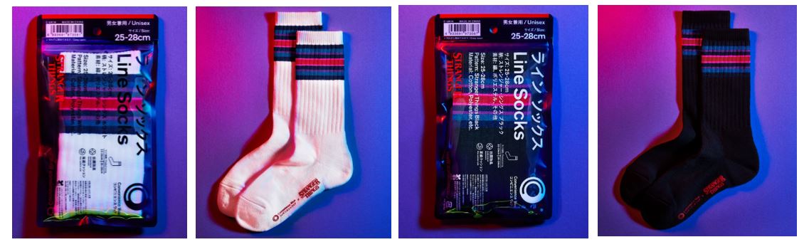 On July 12, two types of Stranger Things socks and one Imabari towel design went on sale at approximately 16,600 FamilyMart stores across Japan. The design plays with the show’s signature hues and dark retro-futuristic feel. The socks have the Stranger Things logo, while the little hand towel has a branded tag.