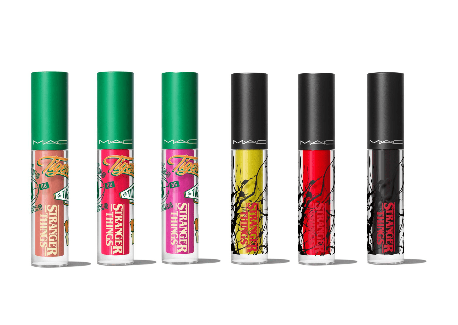The make-up and cosmetics giant MAC has created two Stranger Things-themed make-up sets. The “Hawkins Class of 1986” set proudly displays Hawkins High School colors and the tiger mascot. The eye shadow palette is in a green case and has popping fun disco colors and a classic ’80s aesthetic. The brushes, lip gloss and pink blush also feature the school prominently.