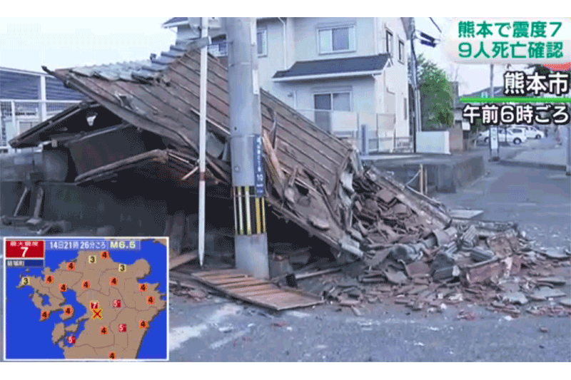 A Kyushu Shinkansen train was derailed by the quake, but no passengers were on the train at the time. NHK broadcasts showed footage of firefighters battling blazes during the night, and severe damage to roads and buildings could be clearly seen by daybreak.