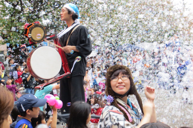One person who fully embraces the notion of nostalgia that these humble spaces can evoke is contemporary artist Shinji Ohmaki. Last month he invaded Senju Asahi Park (also known as Taroyama Park) in Kita Senju, releasing massive amounts of sparkling soap bubbles and transforming the grey urban space into a dreamland. Part of the Art Access Adachi project, Ohmaki’s piece aimed to radically alter the local scenery—bringing old memories to life and forging new ones. The result was an ordinary space turned extraordinary, with music, dancing, and thousands upon thousands of bubbles.