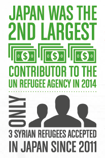 Last year it was the second biggest contributor to the UN Refugee Agency, donating more than $181 million. Since 2011, however, only 63 Syrians have arrived on these shores (according to government data released this August); of them just three have been recognized as refugees. Human rights organizations, like Amnesty and other NGOs, are calling on the Abe Administration to ease its requirements for granting refugee status and make a more substantive gesture to the crisis that goes beyond checkbook diplomacy.