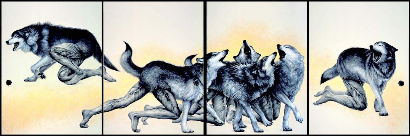 Konoike has spent much of her career building a universe populated with an entire lexicon of recurrent imagery and supernatural beings, including a torso-less girl with red shoes, packs of six-legged wolves, a variety of insects, and storms of wind-borne daggers. Her imagery is bold and feral, wintery and primeval, and in no small measure influenced by her Akita prefecture roots.