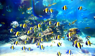 In another large – but not so intimidating – tank reside some not so large but definitely intimidating fishes. In fact, though, one of the main reasons that the denizens of this 800-cubic-meter tank are viewed with fear is that they are poorly understood. Of course, there is something in the appearance of these long-bodied, sharp-toothed, large-mouthed sharks, including bulls, tigers and sicklefin lemon sharks, that will inspire you with a sense of awe – and maybe just a touch of the willies. You can watch these tough-guy predators as they make their way around their tank, and occasionally catch a feeding session. However, these apex predators are actually quite sensitive and not nearly as ravenous as the movies would have us believe. A visit to the interactive Shark Research Lab where the “Dangerous Sharks” tank will fill you in on many details of these fascinating creatures’ lives, and it’s a place where the world’s first lemon shark was successfully born in captivity.