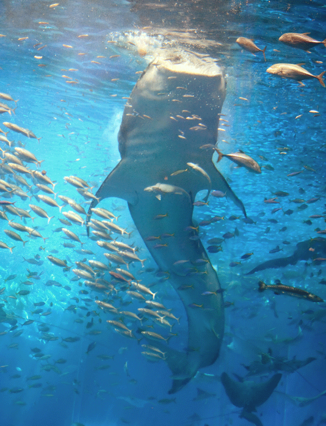 So you go to Okinawa to see the sea. It’s blue and beautiful. It’s the “beautiful sea,” you see. The Okinawans themselves even have a special word for it: churaumi. Chura for beautiful in the local language, and umi, well, for sea. And what a great word that would be if, for example, you opened a really, really big place to celebrate this awesome pool of salty water and those amazing creatures living in it. You could call it Okinawa Churaumi Aquarium.