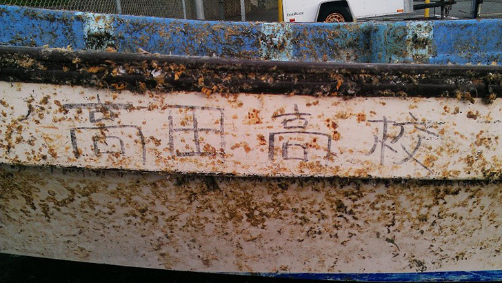 The Facebook page run by the city of Rikuzentakata (www.facebook.com/RikuzentakataCity) received a message and a series of photos. “Is this boat something that belongs to your high school?” I browsed the photos and saw the large hand-written letters, the magic marker ink fading in places. Takata High School. In Japanese. Was this our boat?