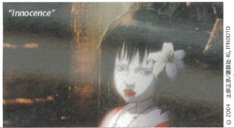 “Innocence” starts in the year 2032. The line between humans and machines has been blurred almost beyond distinction. Humans have forgotten they are human and co-exist with cyborgs (human spirits inhabiting entirely mechanized bodies) and dolls (robots with no human elements at all).
