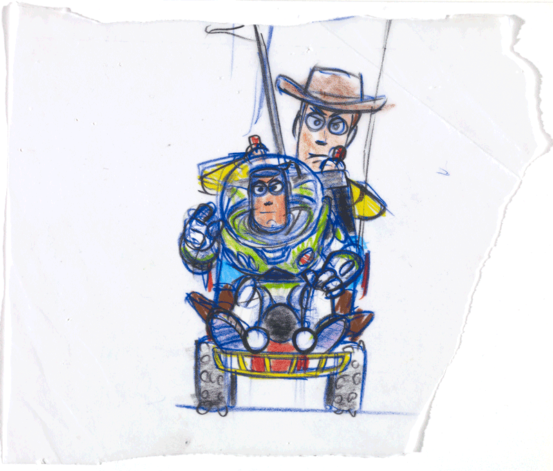 Bob Pauley, Woody and Buzz, Toy Story, 1995, Reproduction of marker and pencil on paper ©Disney/Pixar