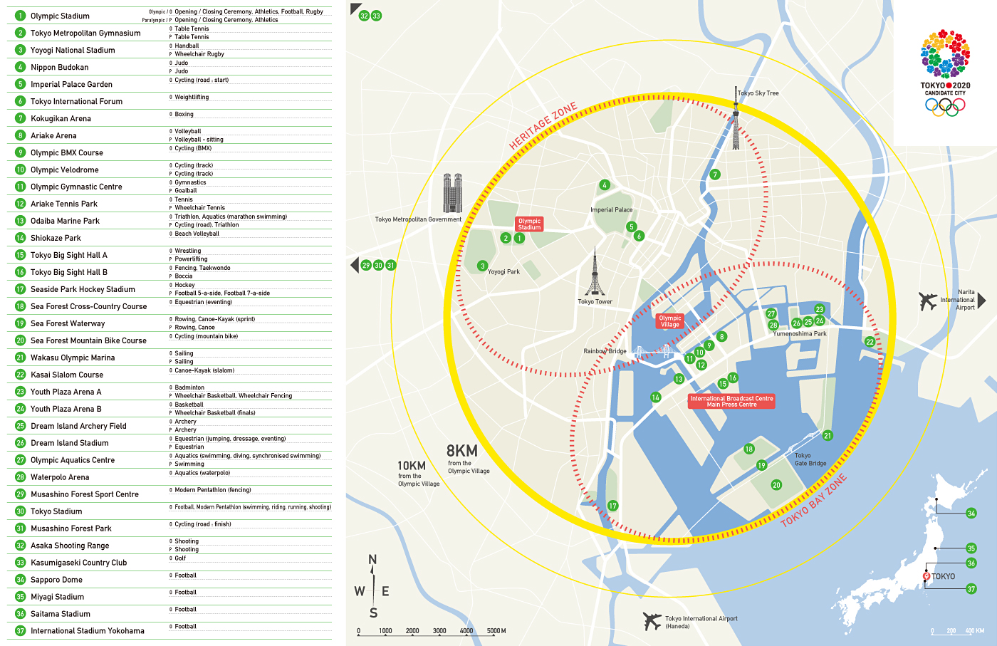Venues that form part of the Tokyo 2020 Olympic Bid. Click to enlarge. (Image courtesy of the Japanese Olympic Committee)