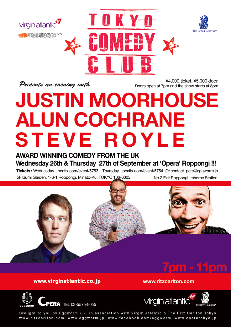 Tokyo Comedy Club, featuring Justin Moorhouse, Alun Cochrane and Steve Boyle.