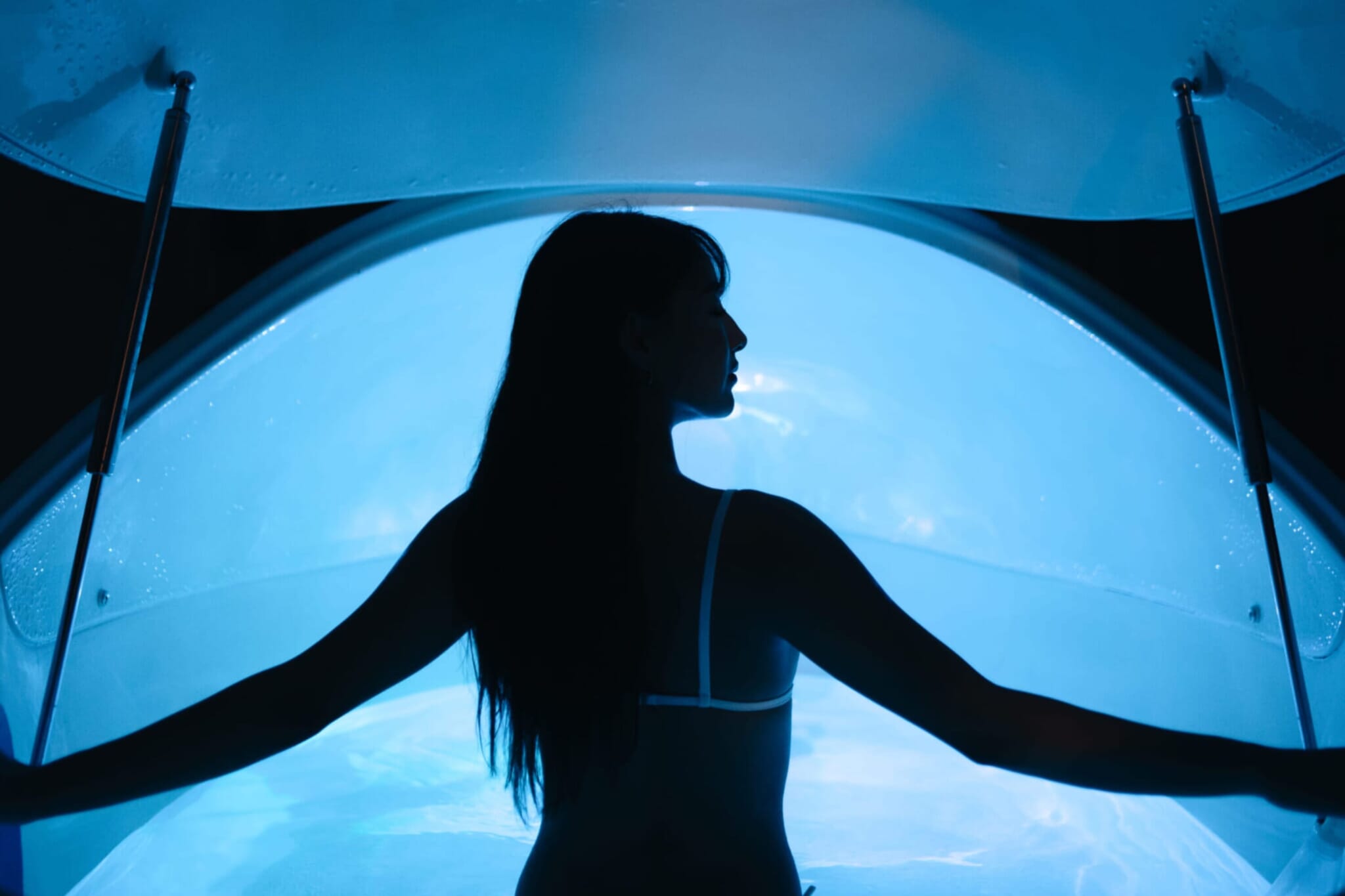 The floatation tank (also known as the isolation tank, or sensory deprivation tank) was developed in the 1950s by scientist and “psychonaut” John C. Lilly, whose other projects included human-dolphin communication. A float session is intended to facilitate relaxation and self-exploration through immersion in sheer nothingness, or what Kanesaka compares to the Zen Buddhist notion of “mu.”