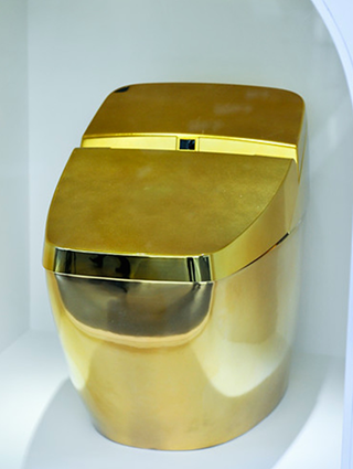 Japan has been known for its high level of sophistication when it comes to their bottom-washing, seat-warmed toilets, and many can be seen on display at the exhibition, including diamond encrusted and gold plated designs. And if you’ve ever been curious about what it would be like to be a feces, the exhibit has you covered: a five-meter high toilet with a slide down the middle allows you to feel what it’s like to be flushed down a toilet, all while wearing a poop hat provided by the exhibit.